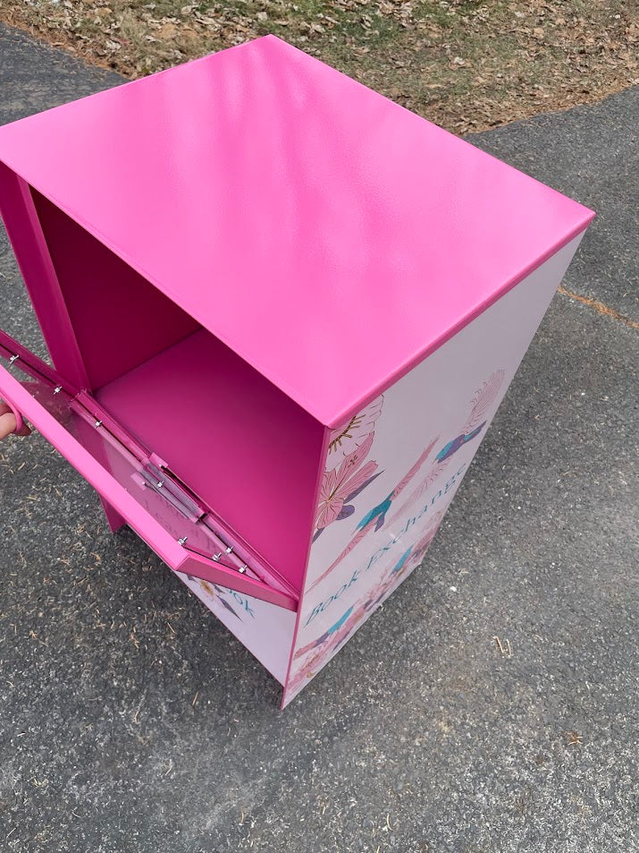 Bright, cheerful, and full of charm, the Garden Birdsong Book Exchange transforms any outdoor corner into a welcoming place to share stories. Finished in a glossy pink powder coat and wrapped in soft floral artwork and pastel songbirds, this Sidewalk Library brings an uplifting, nature-inspired touch to parks, neighborhoods, schools, and community spaces.